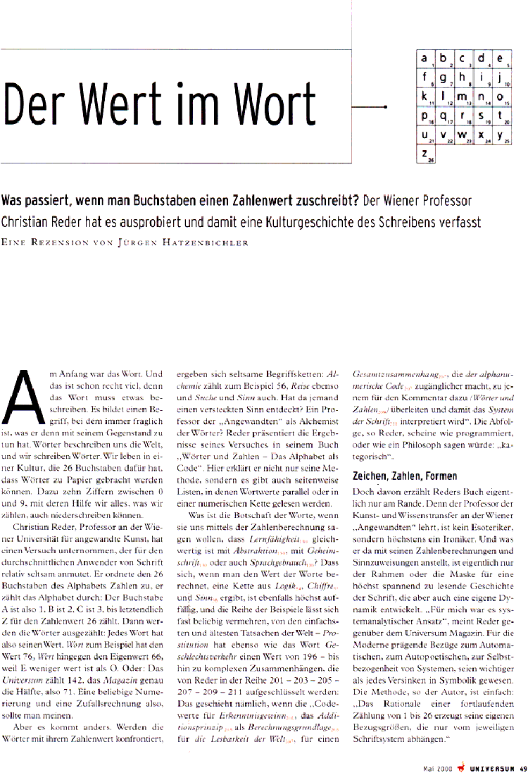 Studie zur Schriftkultur, zu Codes, zu Präzision, zu Wahrnehmung,
