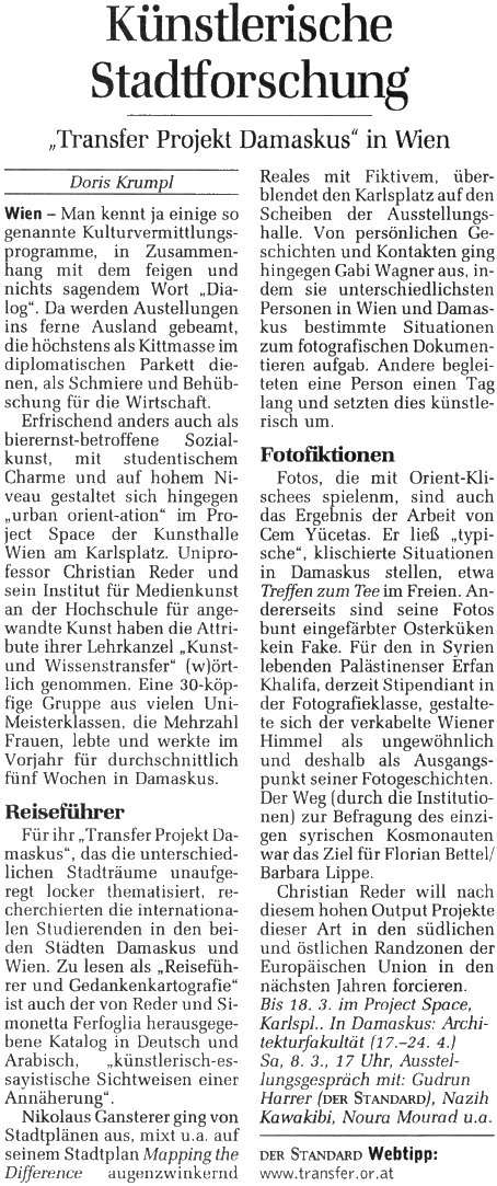 www.ChristianReder.net: Publikationen: Transfer Damaskus: Presse