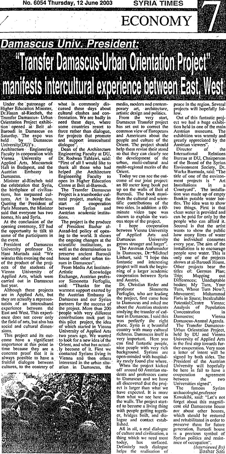 Syria Times, Damaskus, 12. Juni 2003