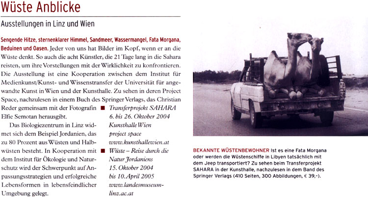Wüste Anblicke Ausstellungen in Linz und Wien Universum, Wien, Nr. 10, Oktober 2004