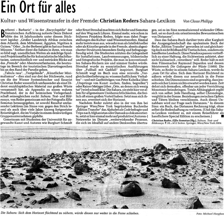 Ein Ort für alles von Claus Philipp Der Standard, Wien, 20. November 2004